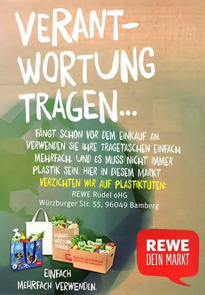 Durch die Auslistung der Plastiktüte bei REWE werden jährlich gut 140 Millionen Plastiktüten in Deutschland eingespart. Würde man diese nebeneinanderlegen, würde die Strecke eineinhalb mal um die Erde reichen.